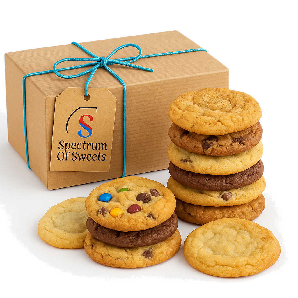 Each cookie is baked fresh in small batches using premium ingredients like creamy butter, farm-fresh eggs, and rich Belgian chocolate or vanilla accents.